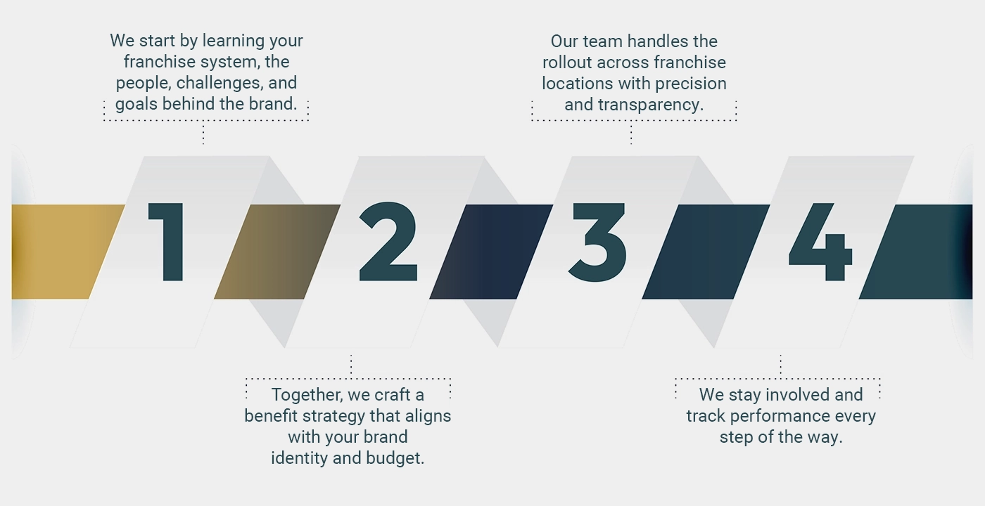 Rolling out a benefits program across your franchise network is made easy with our four-step process. From franchise-specialty